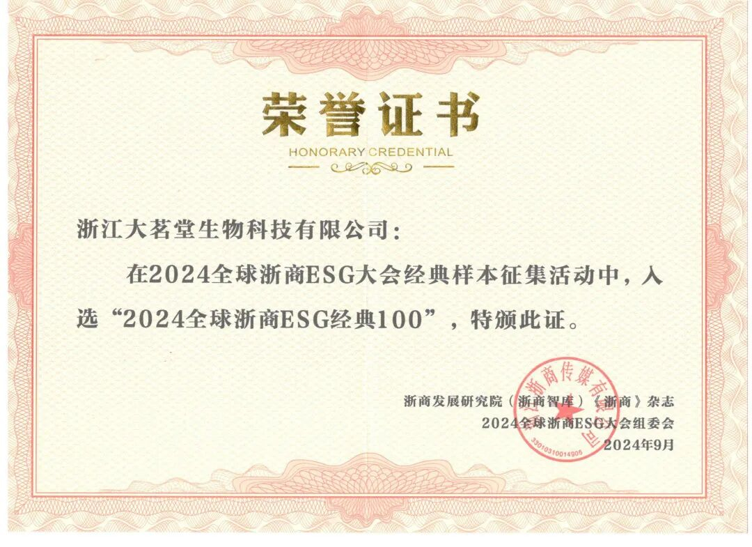 近年来,大茗堂和江南大学、天津医科大学、浙江中医药大学、云南农业大学和日本九州大学分别建立技术合作,共同研究打造科学的配方。企业自建了国内相关领域具有领先水平的检测实验室,坚持15道检测环节,并坚持第三方检测监督。同时,为进一步为消费者提供安全保障的决心,企业与中国人保达成合作,为全线产品购买保险。正是凭借着对社会责任、服务意识和企业发展理念的长期坚守,大茗堂成功入选“2024全球浙商 ESG 经典100”。